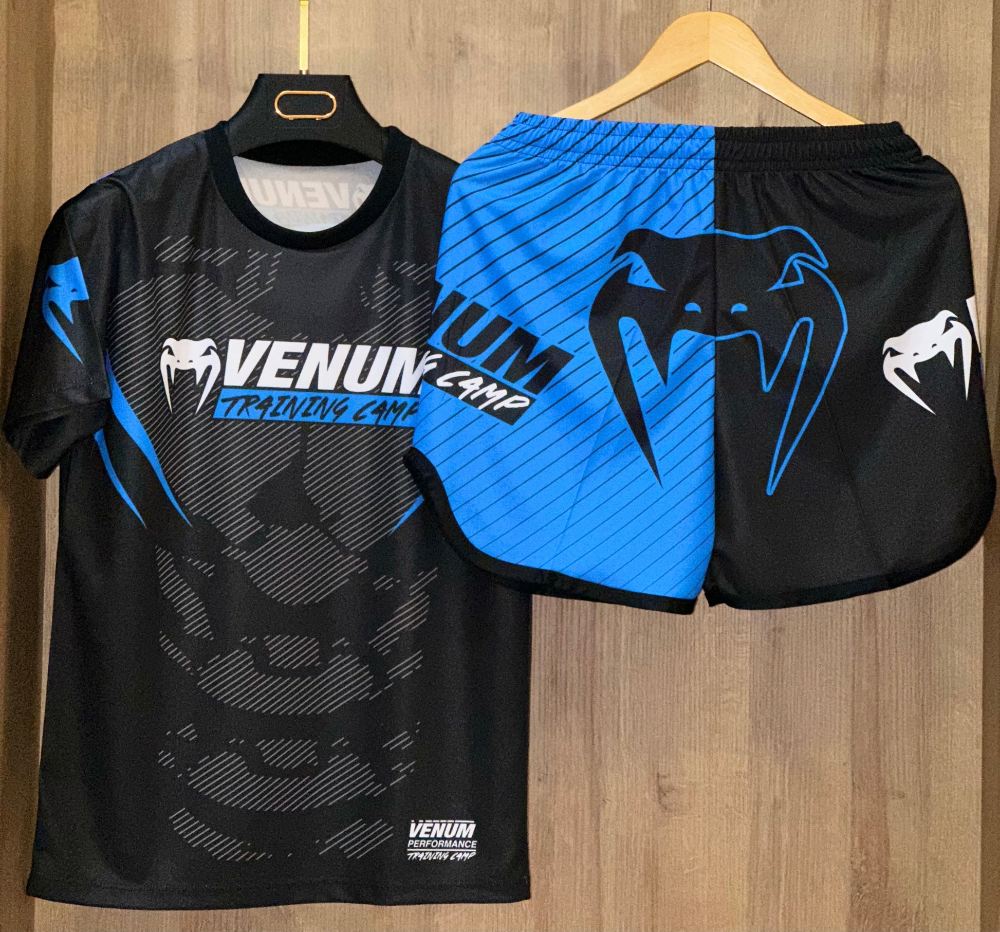 Ensemble bleu et noir au design moderne, parfait pour allier confort et performance tout en attirant les regards.
